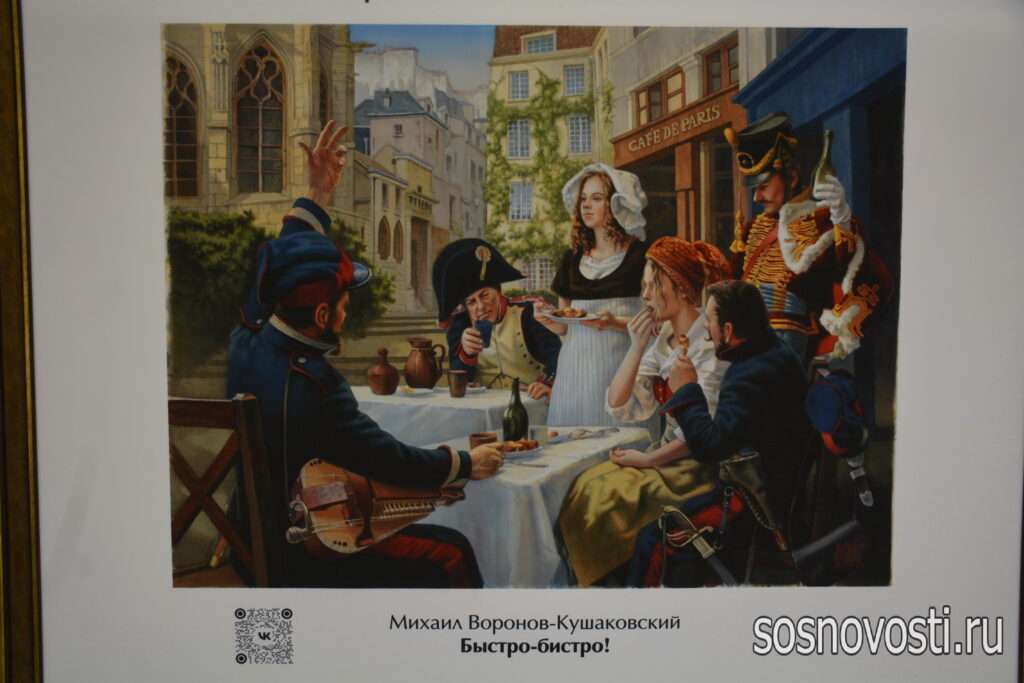 – Я начал писать серию картин на тему боевого и духовного братства народов Южного Урала в войне с Наполеоном, – рассказывает Михаил Воронов-Кушаковский. – Долгое время в медиа-пространстве было мало информации о том, что южноуральцы участвовали в этих событиях. А участвовали они очень серьёзно и у них много заслуг. Одну или две картины я написал и понял, что меня полностью втянула историческая канва. Я очень заинтересовался этим материалом. У меня на тот момент была своя рок-группа. Мы выступали, сочиняли, но в совершенно другом ключе. Хотелось свой музыкальный опыт как-то применить в данном контексте, и я начал писать «Сказы» по этим картинам и ещё петь песни. Постепенно стал формироваться коллектив. Сегодня мы пришли втроём, а вообще нас сейчас 7 человек.