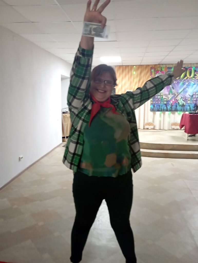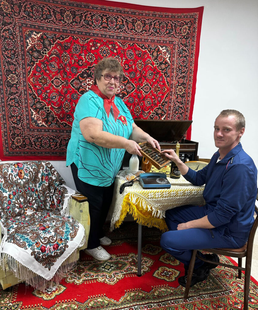 Уже при входе в зал мы окунулись в эпоху 60-90-х годов. Нас радушно встретила хозяйка зала Дина Мартенс в легком платье и беретике. Возле сцены хлопотала красивая официанточка Мария Липс. Весь вечер она «угощала» нас каверзными вопросами. Например, что можно было купить за копейку, а за три или пять? Конечно, для более молодого поколения эти вопросы были трудны, а мы, пионеры – комсомольцы, прекрасно знали, что можно купить коробок спичек, выпить стакан лимонада, сходить в клуб на детский сеанс. Помощница официантки Катя Матвеева за каждый ответ награждала нас деньгами в виде рубля, трёшки и пятерки.