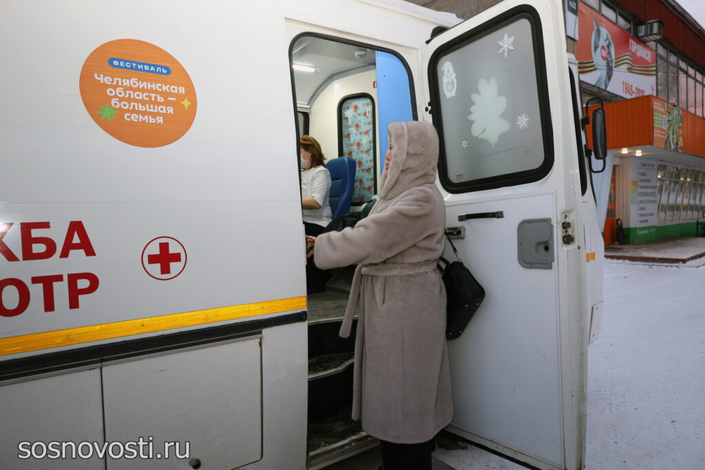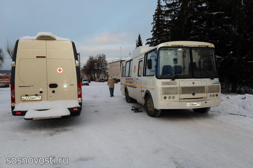Пока жители Долгодеревенского заняты вечерними заботами, на площади Победы ярко горят огни. С 16:00 до полуночи здесь развернута настоящая медицинская станция. Жители всего Сосновского округа прямо сейчас могут пройти диспансеризацию.