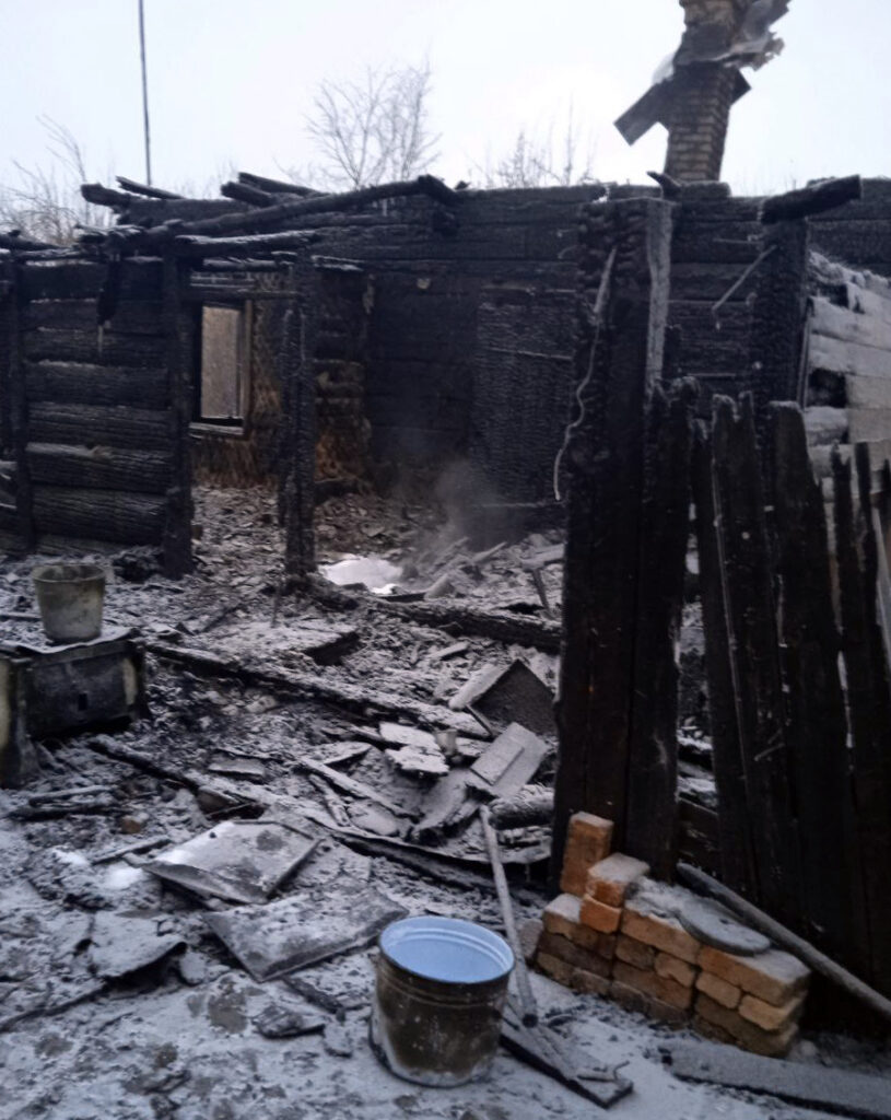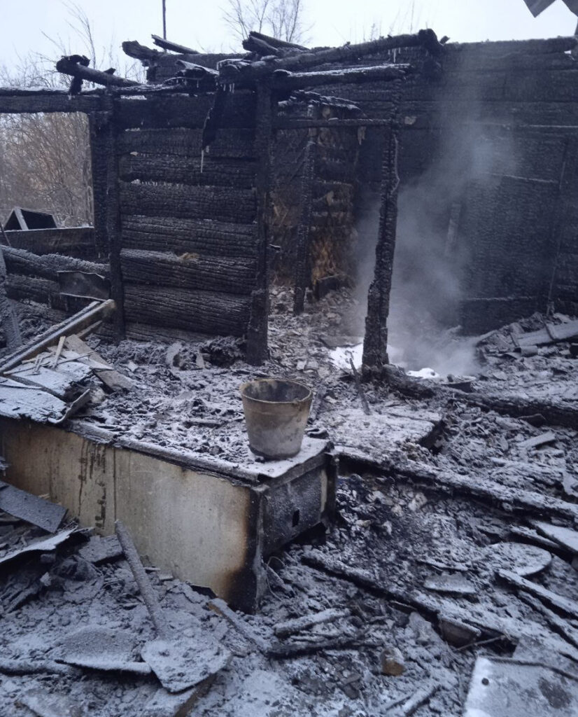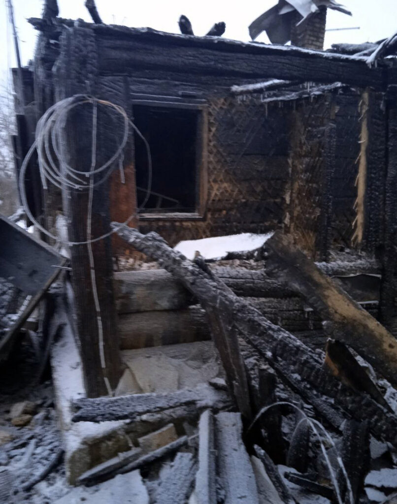 В результате пожара дом уничтожен полностью. Собственница рассказала, что проснулась от звука треска горящего дома, эвакуировалась самостоятельно через окно, добежала до соседей, чтобы сообщить в пожарную охрану. Предположительная причина пожара – неправильное устройство или эксплуатация печного отопления.