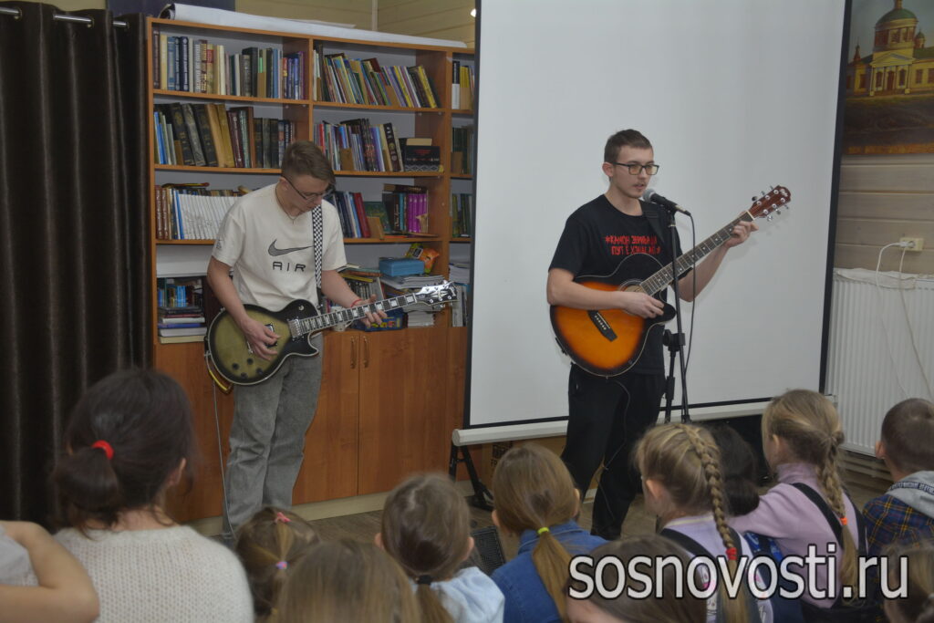 Замечательный концерт начали дети из младшей группы. Ирина Седова и Варвара Ельцова прочитали стихи. Затем ребята под аккомпанемент гитары исполнили песню «Ночь тиха над Палестиной».