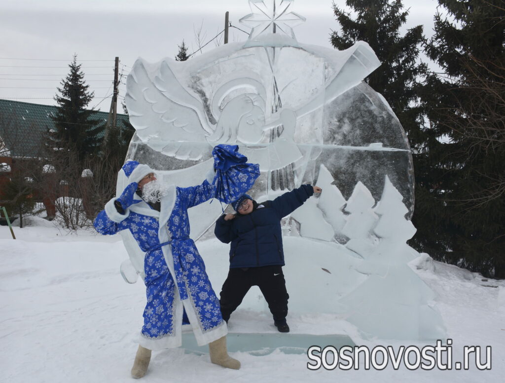 Во время празднования настоятель Свято-Троицкого храма отец Георгий наградил участников конкурсов ледовых скульптур и «Подарки младенцу Христу».