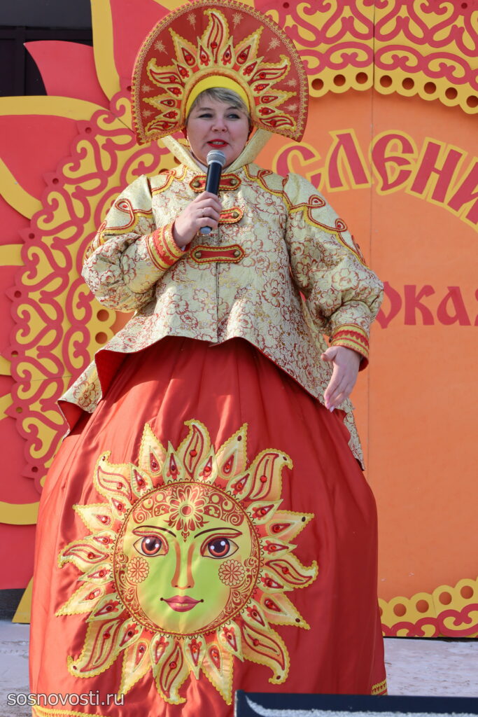 Официальная часть плавно перетекла в народные гуляния. На площади закружился огромный хоровод, который водили под руководством ведущих Сергея Яцука и Виктории Жегулиной. К ним присоединилась и директор РДК, депутат Собрания депутатов Сосновского округа Марина Рысина. Она вышла к зрителям в потрясающем наряде Солнышка – ярком, лучистом, поднимающем настроение.