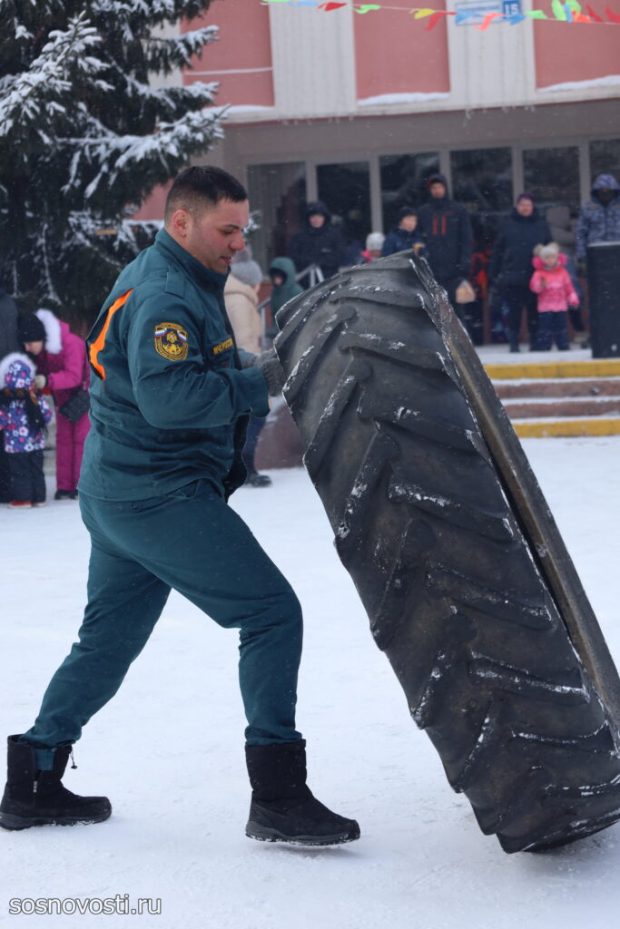 Не обошлось и без традиционных мужских состязаний. Добры молодцы выходили на помост тягать гирю и переворачивать тяжелое колесо. Среди участников выделялись сотрудники МЧС. Они не только следили за безопасностью, но и показали свою молодецкую удаль.
