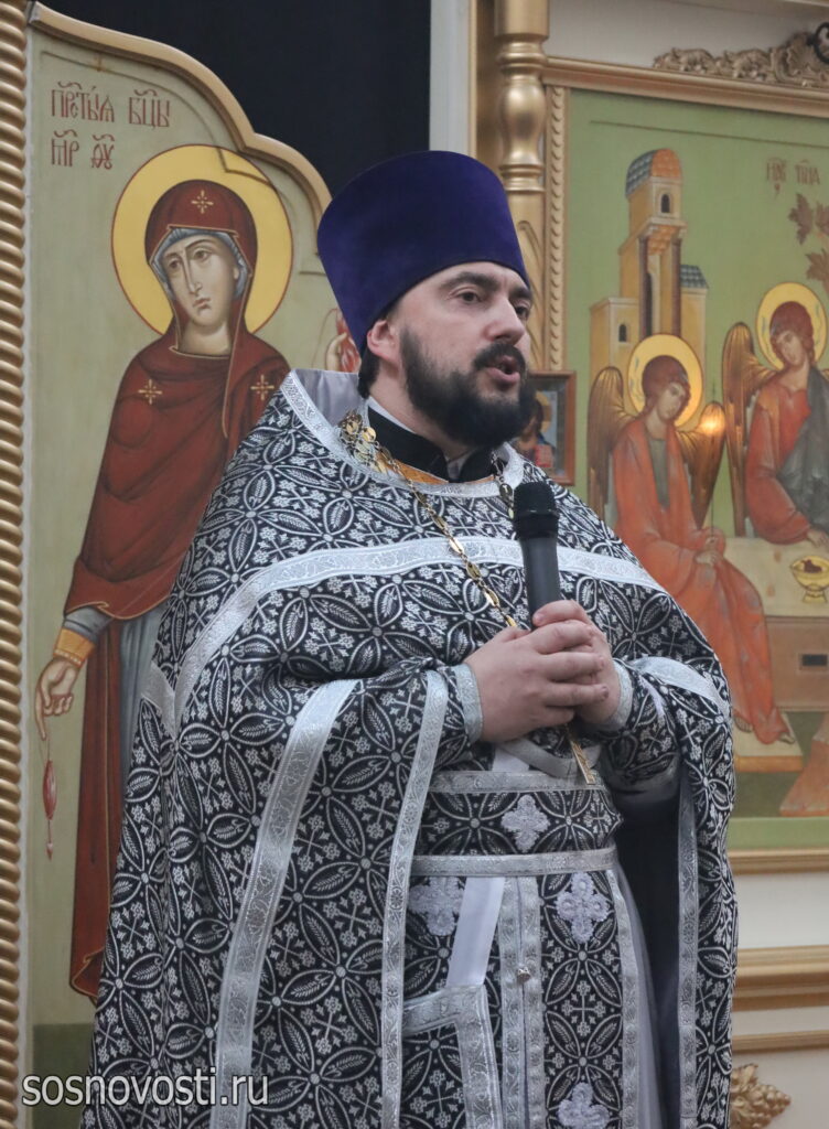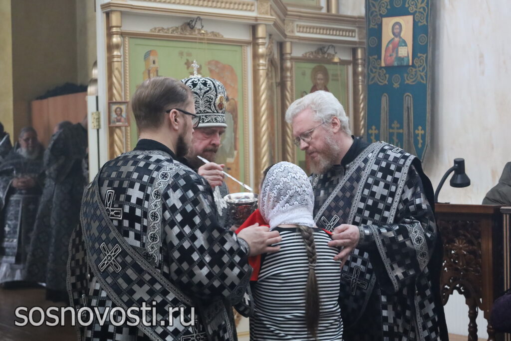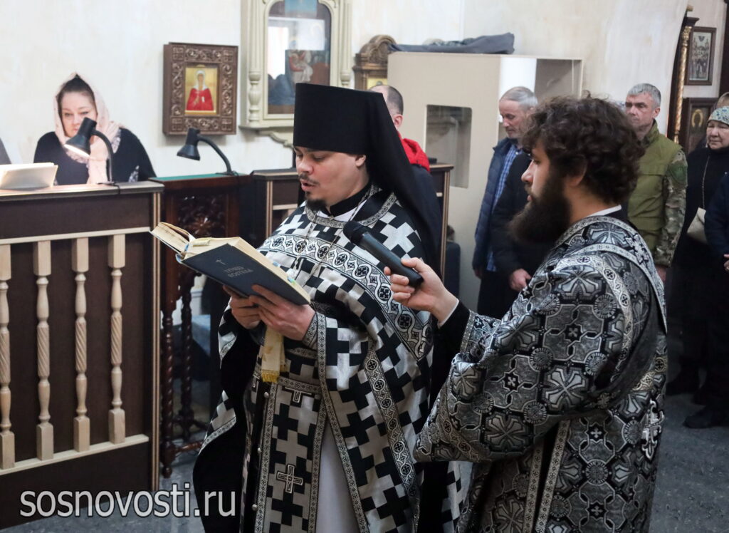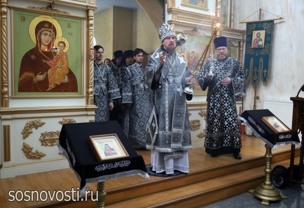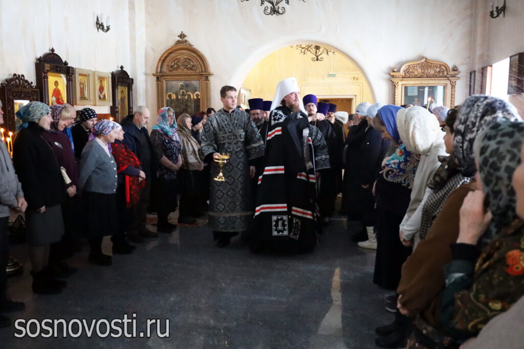 Правящему архиерею сослужили настоятель храма, благочинный Сосновского района протоиерей Георгий (Артарьян) и клирики Сосновского благочиния.