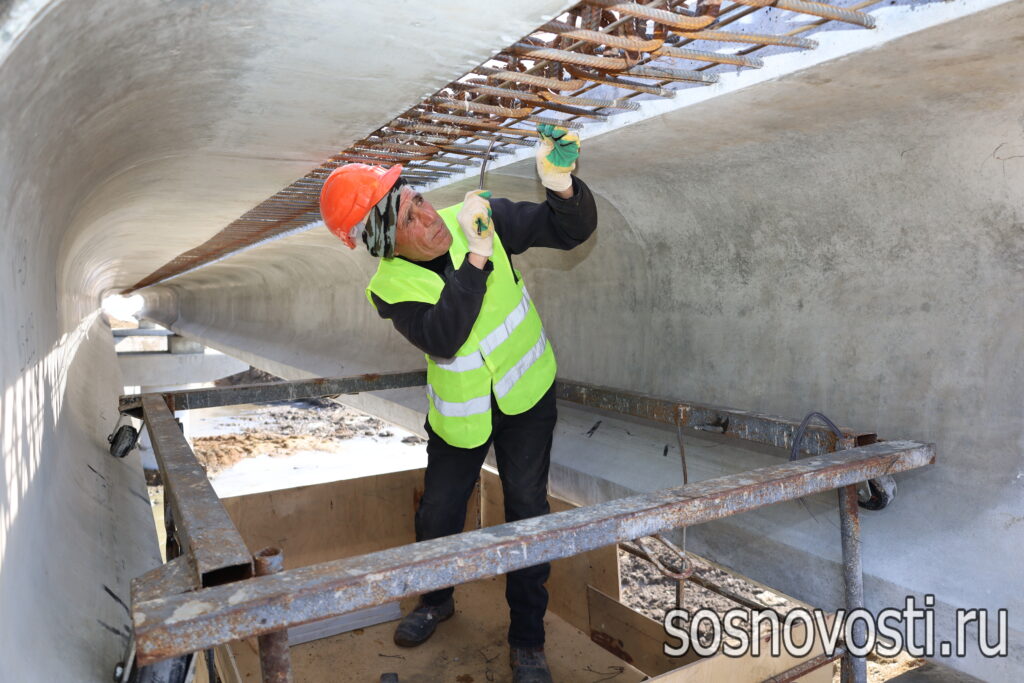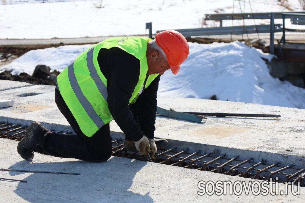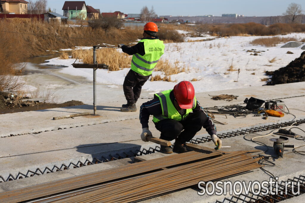 Вчера, 19 марта, установлены мостовые балки. Сегодня, 20 марта, мостостроители начали работы по подготовке к заливке стяжек. Идет кропотливая ручная работа по перевязке арматуры.