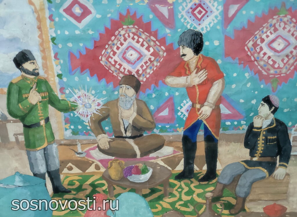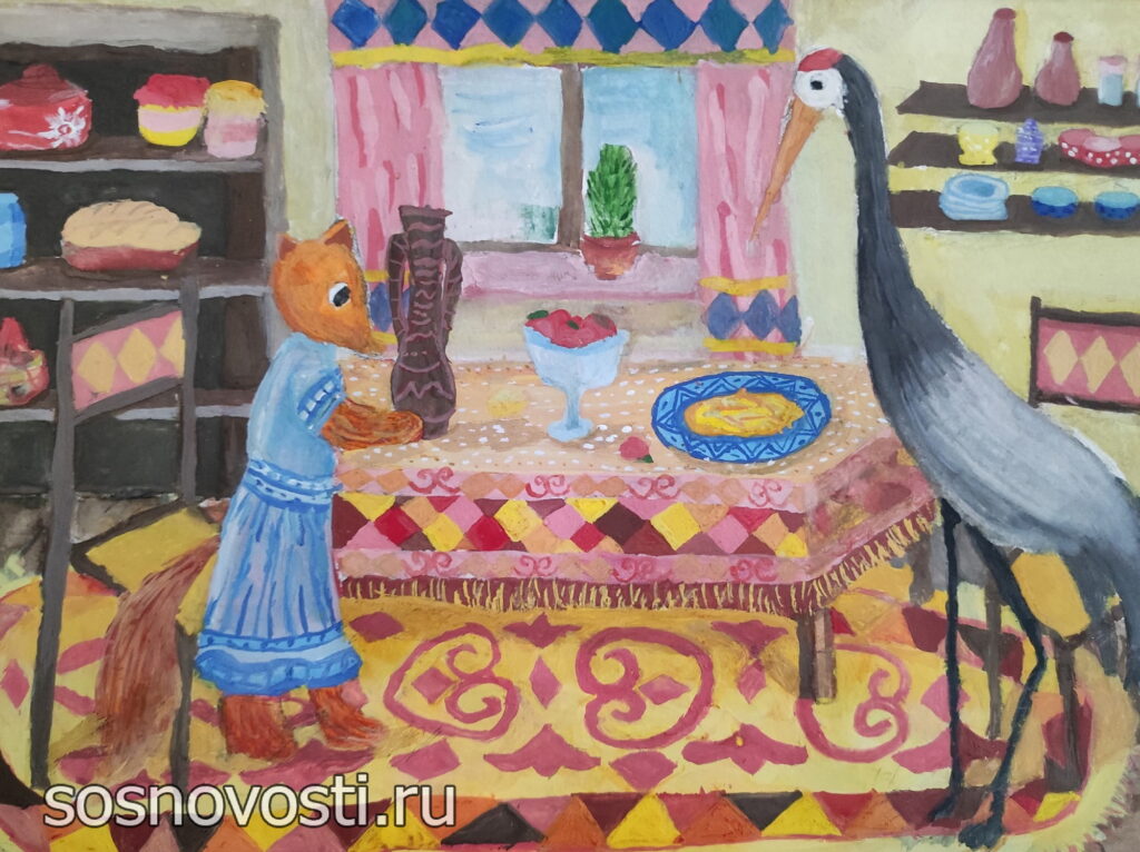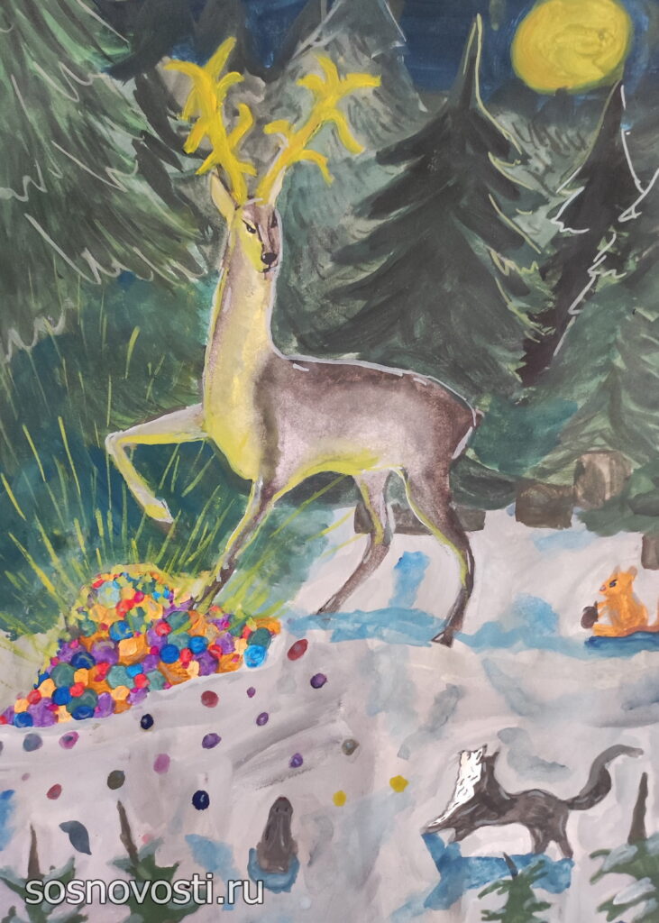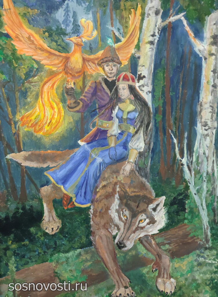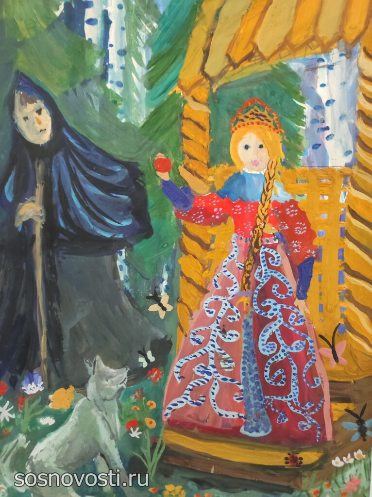В Долгодеревенской школе имени героя России Андрея Мосина открылась выставка картин на тему «Сказки народов России».