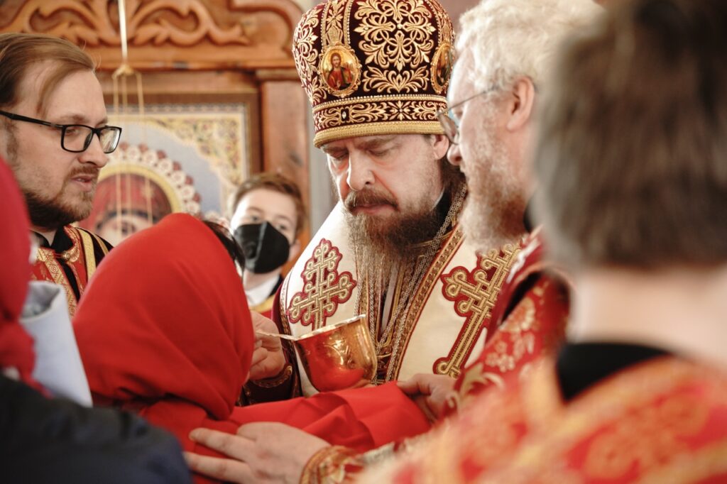 Музыкальное сопровождение богослужения обеспечил Архиерейский квартет под руководством регента Марины Гоман. В рамках службы митрополит Алексий наградил почётным правом ношения золотого наперсного креста иерея Димитрия Писарева, настоятеля храма Вознесения Господня в поселке Синеглазово, и иерея Максима Малашенко, клирика Свято-Троицкого храма села Долгодеревенское.